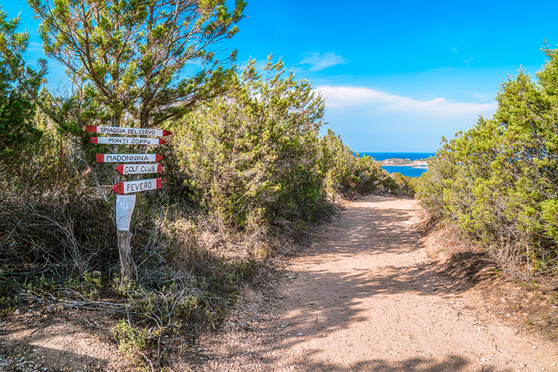 Quattro i punti di partenza: Grande Pevero, Pevero Golfo Club, Cala Liccia e Romazzino. Sempre a Porto Cervo si possono percorrere tanti altri sentieri, come quello che dalla località Cala di Volpe arriva fino alla spiaggia Rena Bianca passando anche per le spiagge Liscia Ruja e Li Itriceddi.